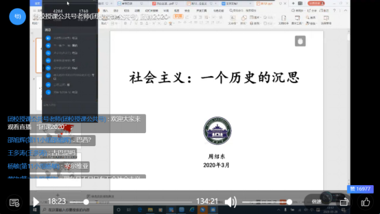 网络团校第一讲由永利集团304am登录马克思主义学院的周绍东老师为同学们带来了主题讲座——社会主义:一个历史的沉思。周绍东老师首先指出了当今时代的最大特征是社会主义与资本主义两大社会形态的并存,以此引出课程的主题——社会主义:一个历史的沉思。讲座内容包含四个部分:社会形态发展的五阶段论、同时革命论和一国首先胜利论、社会形态发展的三阶段论及所谓“过渡时期”和社会主义初级阶段。