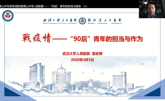 网络团校第二讲由永利集团304am登录人民医院(第一临床学院)团委书记兼眼科中心党总支书记雷宏博老师为学员们带来主题讲座:战疫情——“90后”青年的担当与作为。雷老师的讲座联系当前的疫情,反映“90后青年的担当”,讲座主题主要由三个部分构成: