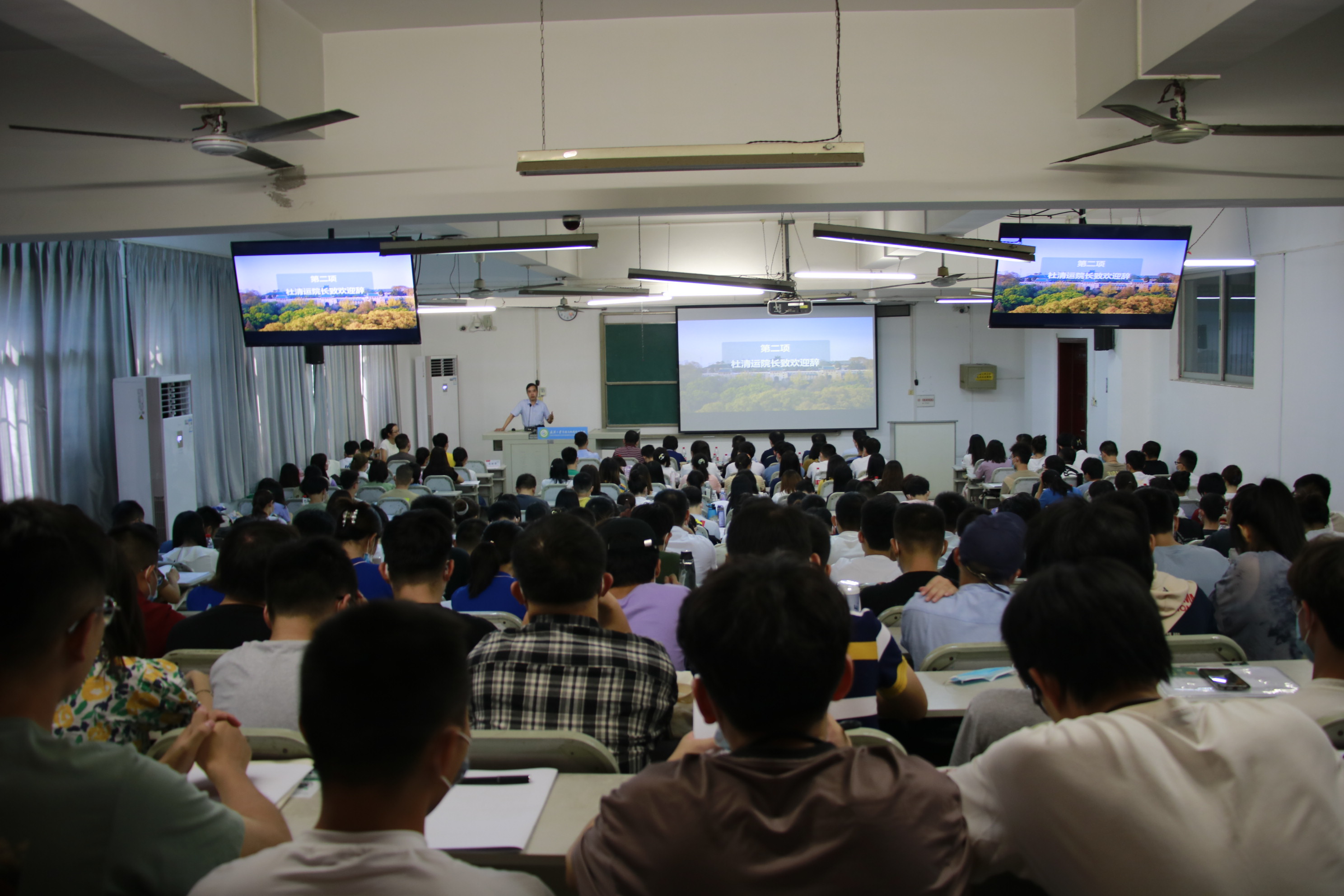 首先,院长杜清运教授致欢迎辞。他代表学院对各位新生的加入表示真诚欢迎,并介绍了学院的基本情况、资源、平台、项目等,希望大家可以在珞珈山收获满意的研究生生活。